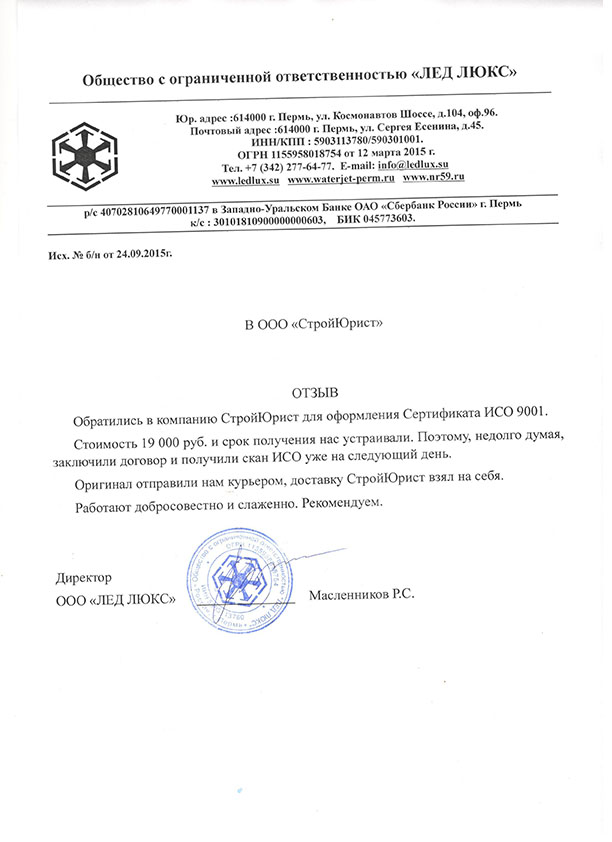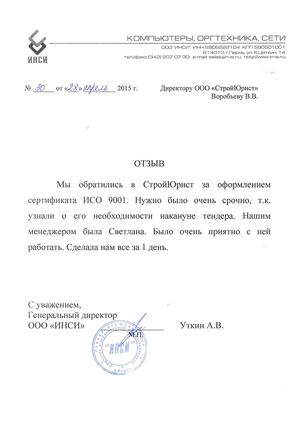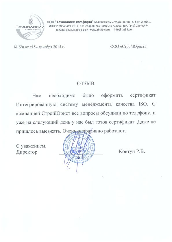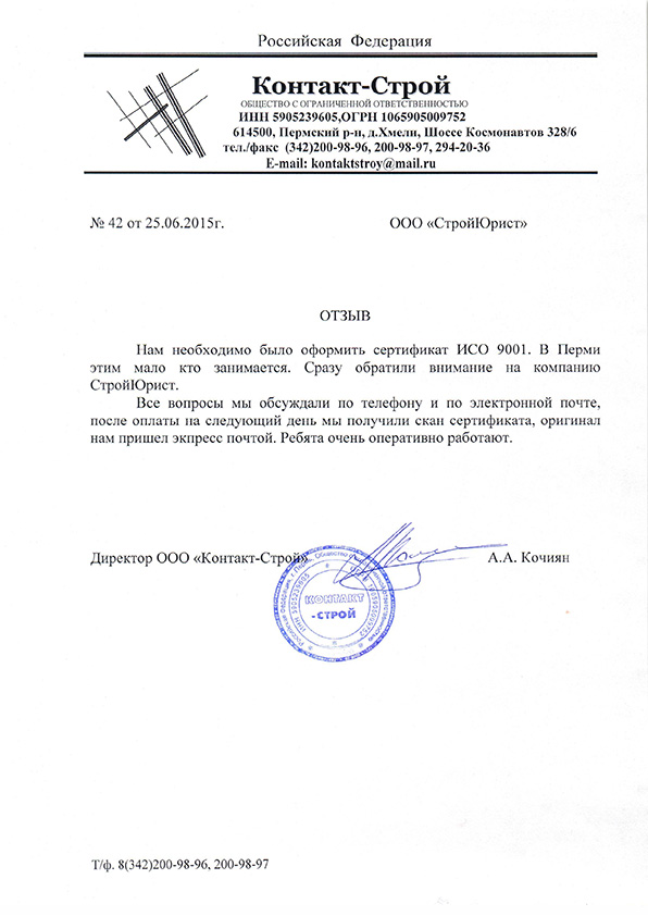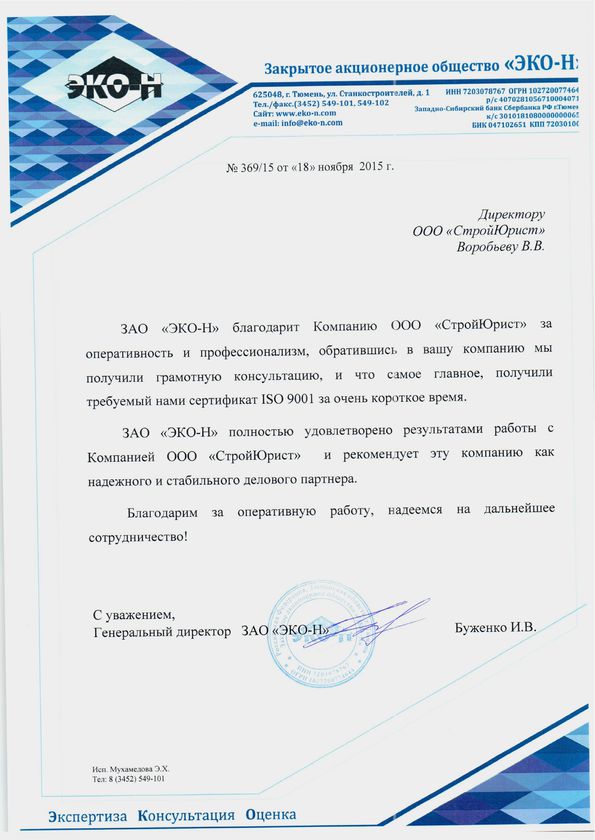 Отзывы клиентов "СтройЮрист" по ISO в Махачкале