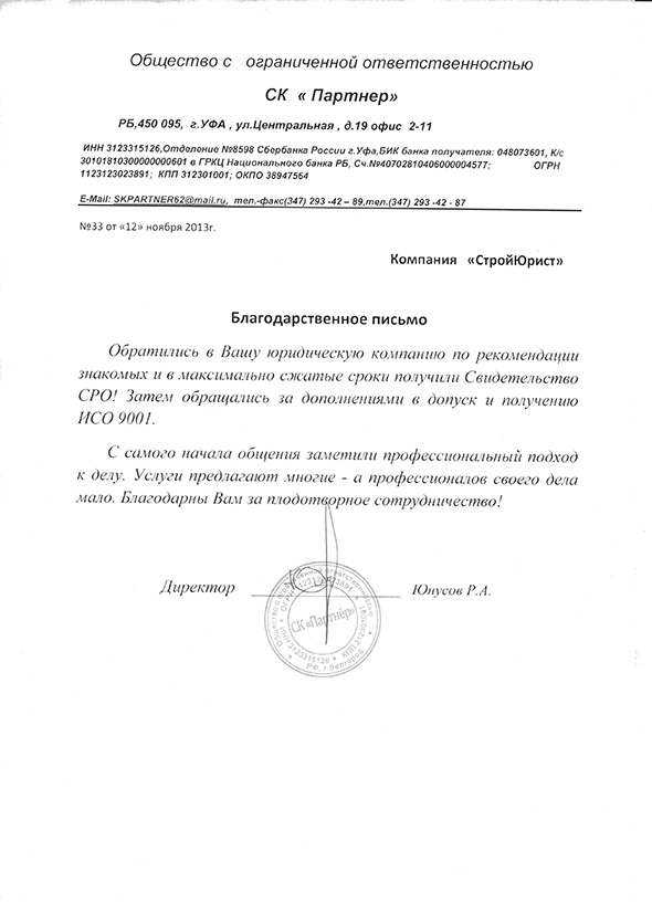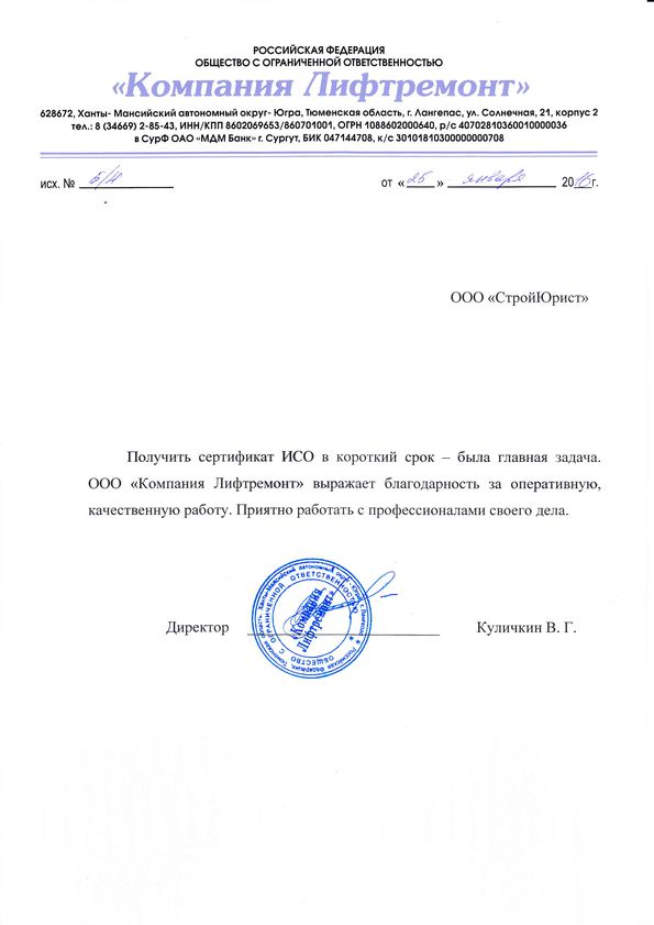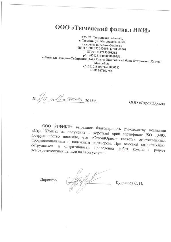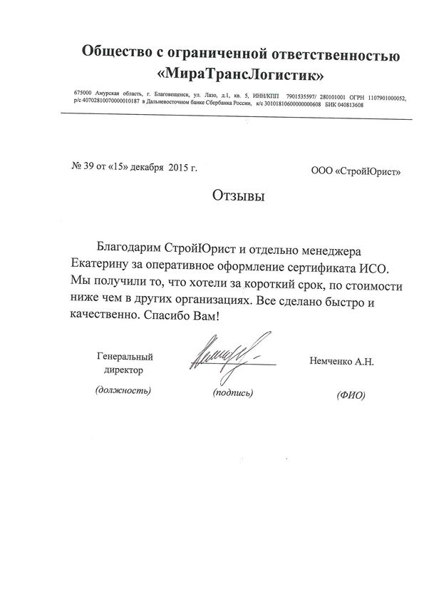 Отзывы клиентов "СтройЮрист" по ISO в Махачкале