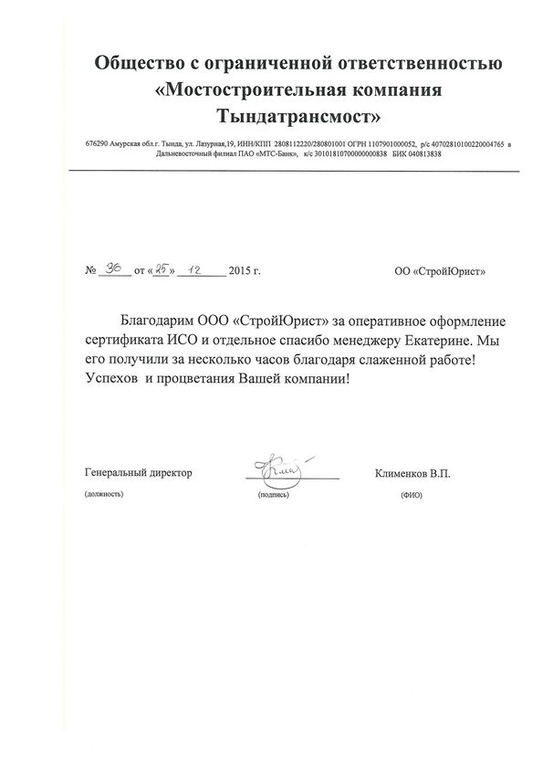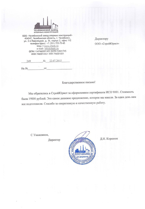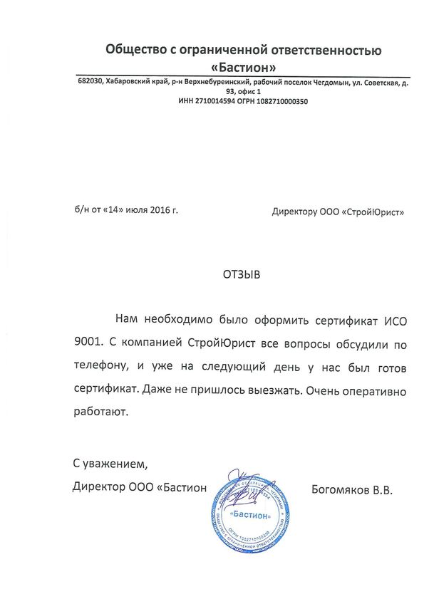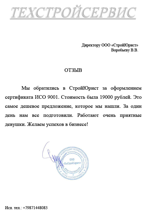 Отзывы клиентов "СтройЮрист" по ISO в Махачкале
