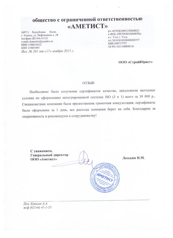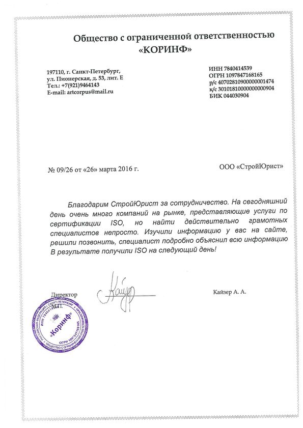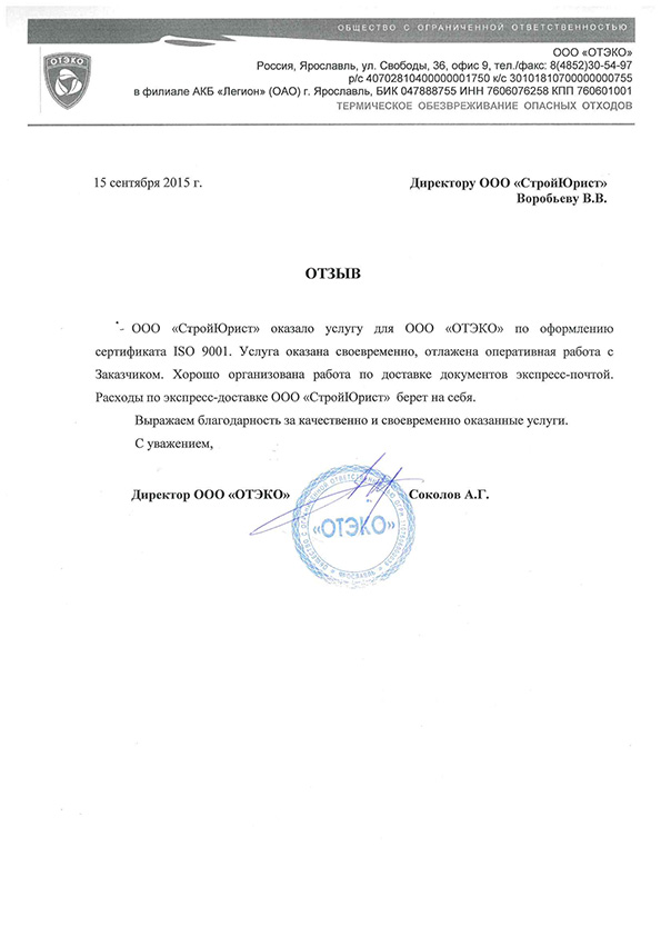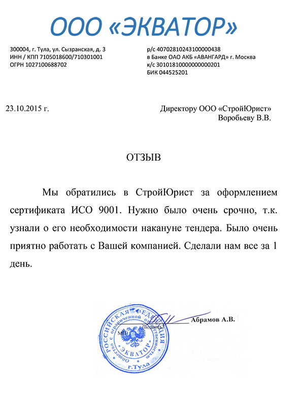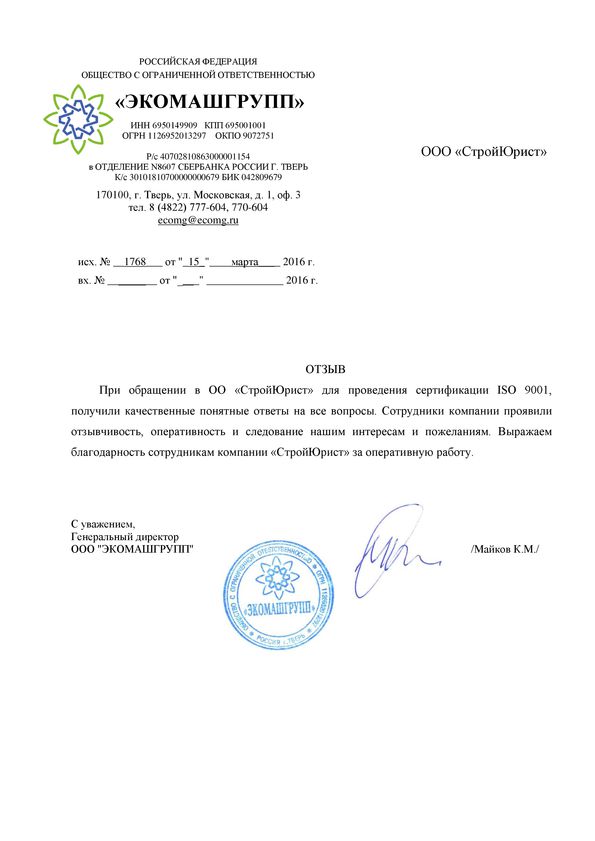Отзывы клиентов "СтройЮрист" по ISO в Махачкале