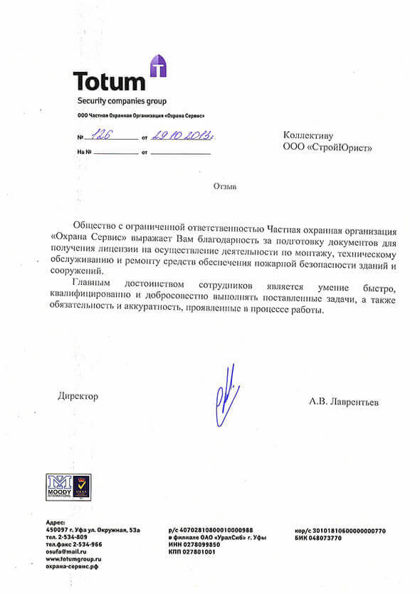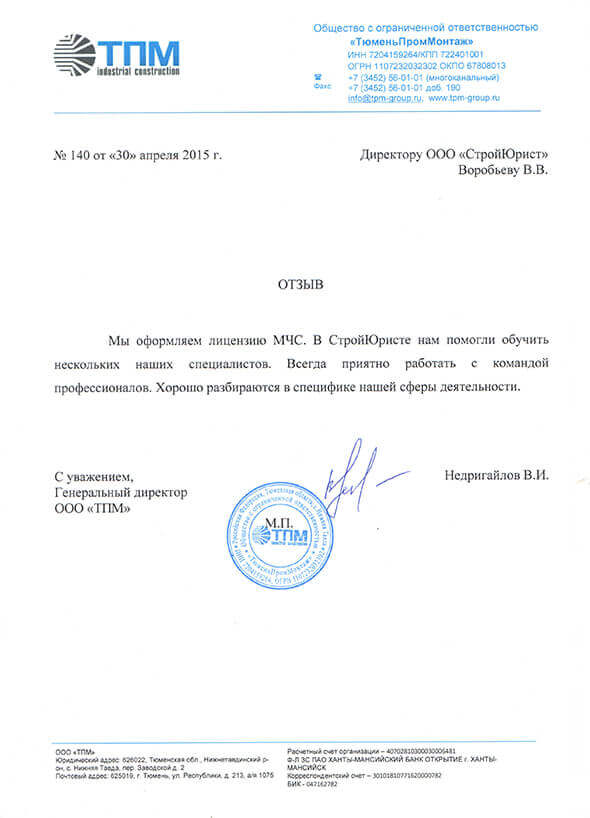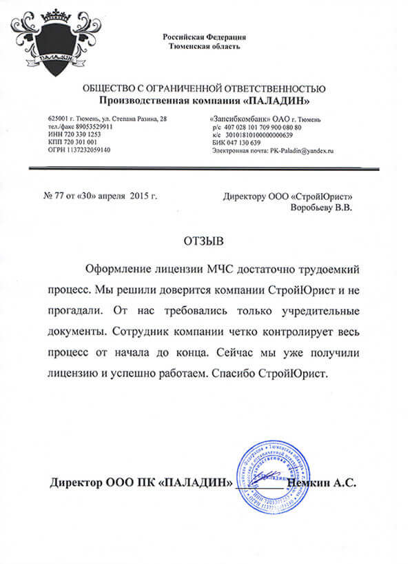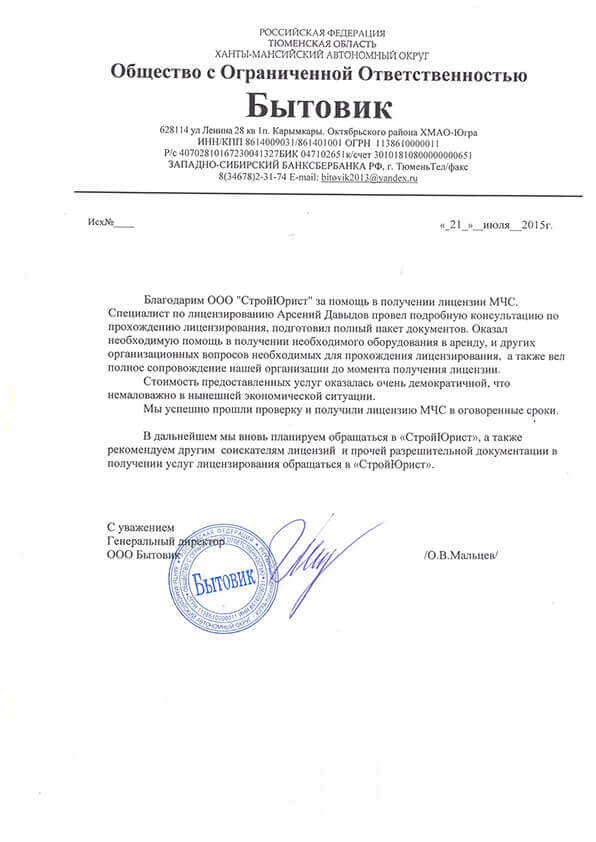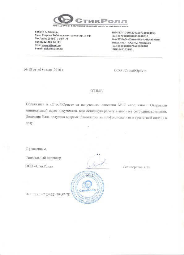 Отзывы клиентов "СтройЮрист" по лицензированию МЧС в Махачкале