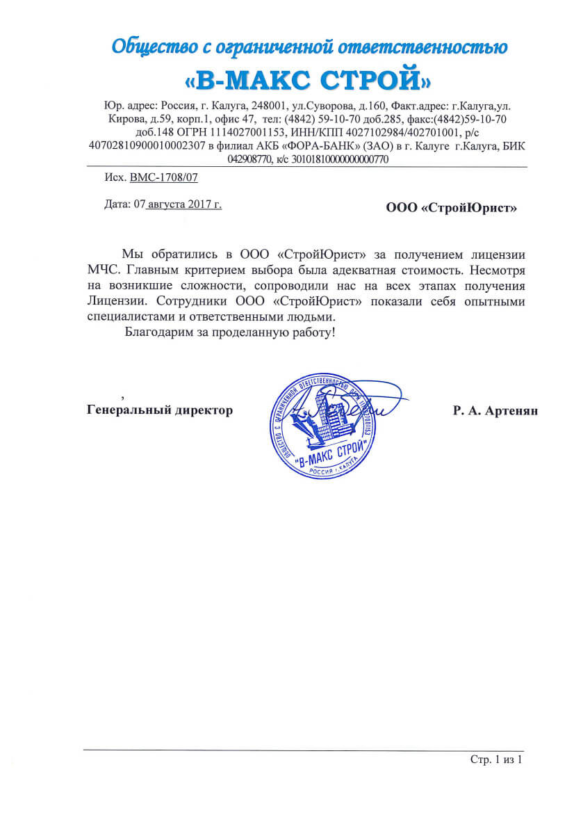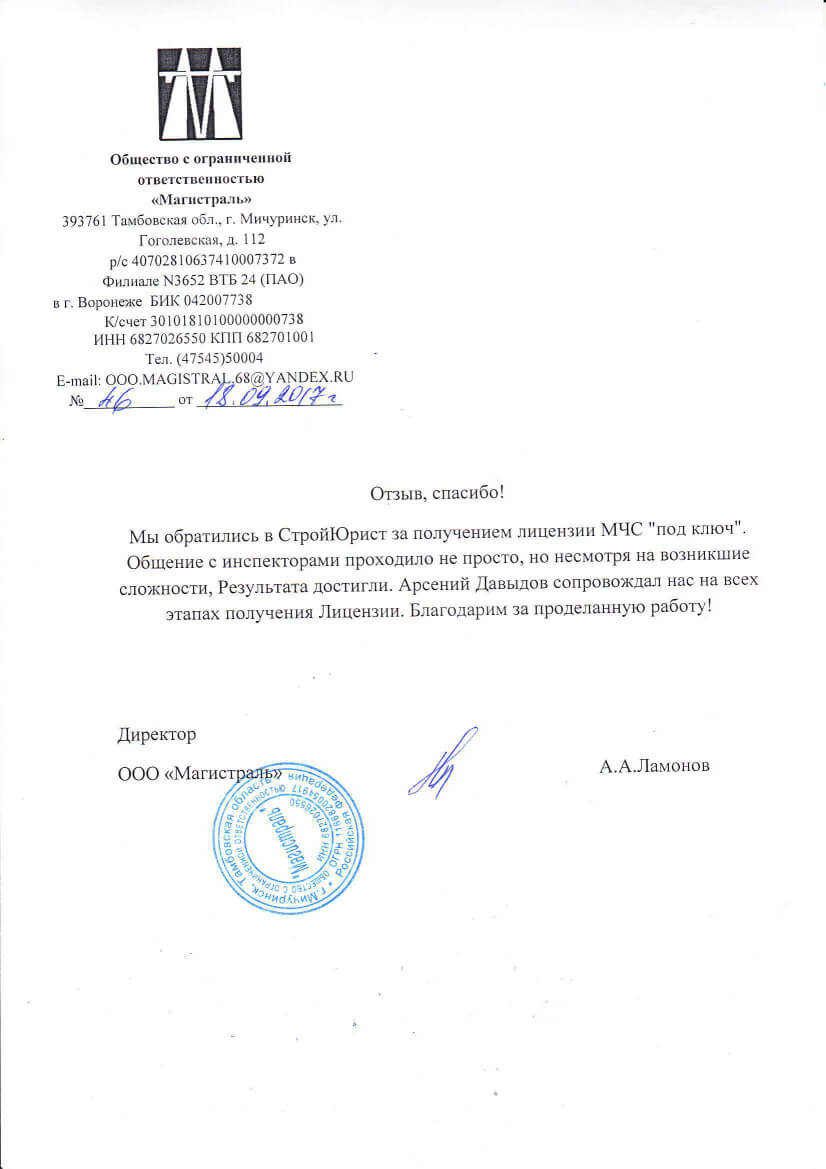Отзывы клиентов "СтройЮрист" по лицензированию МЧС в Махачкале