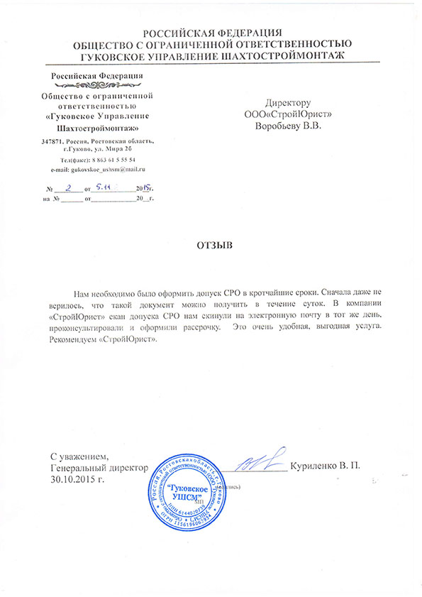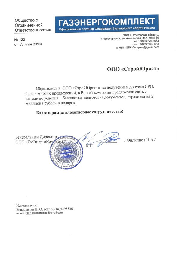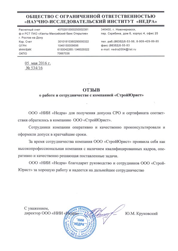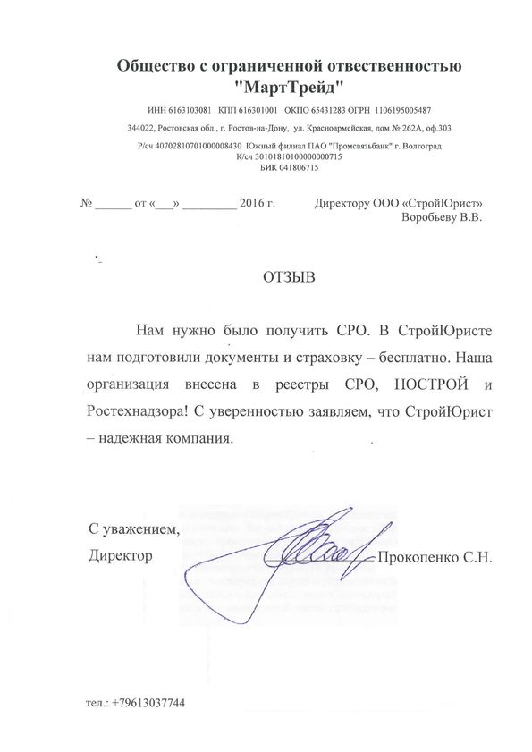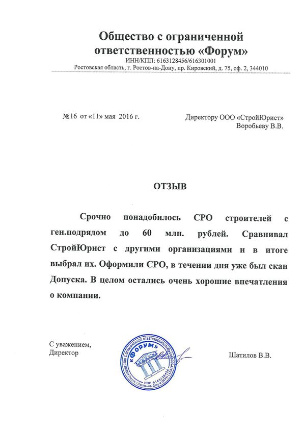 Отзывы клиентов "СтройЮрист" по вступлению в СРО в Махачкале