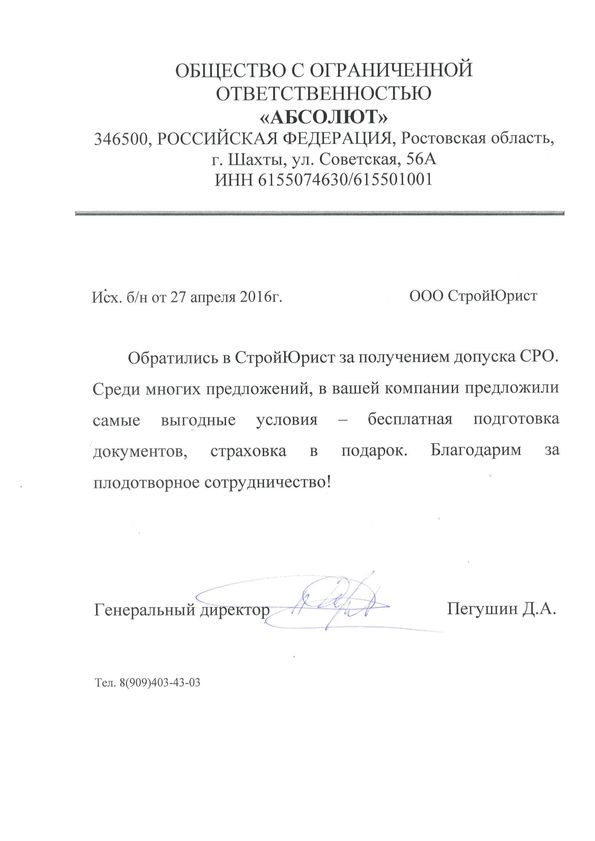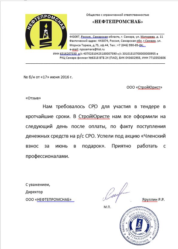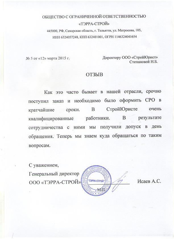 Отзывы клиентов "СтройЮрист" по вступлению в СРО в Махачкале