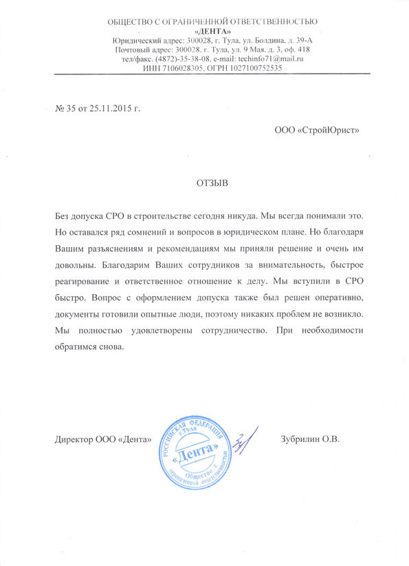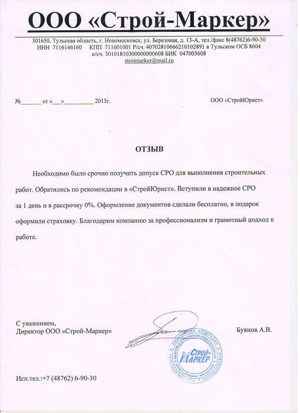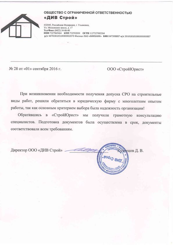 Отзывы клиентов "СтройЮрист" по вступлению в СРО в Махачкале