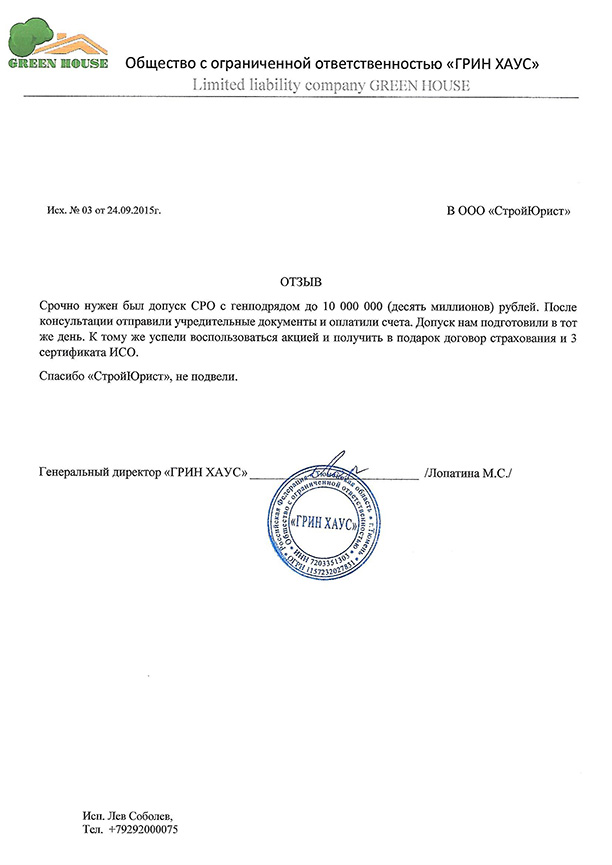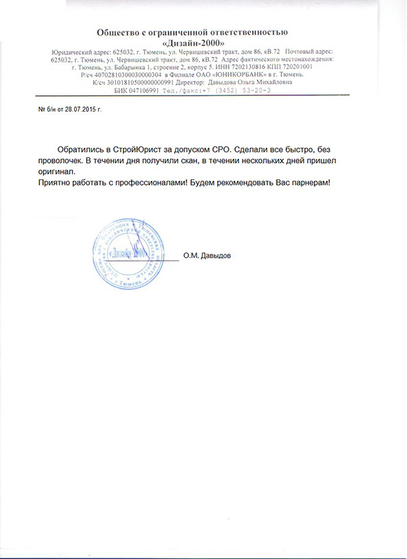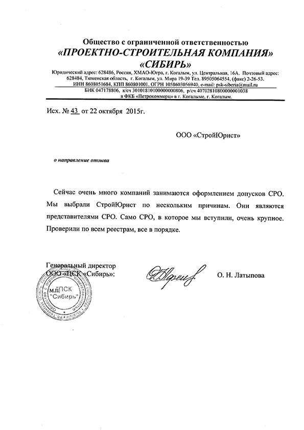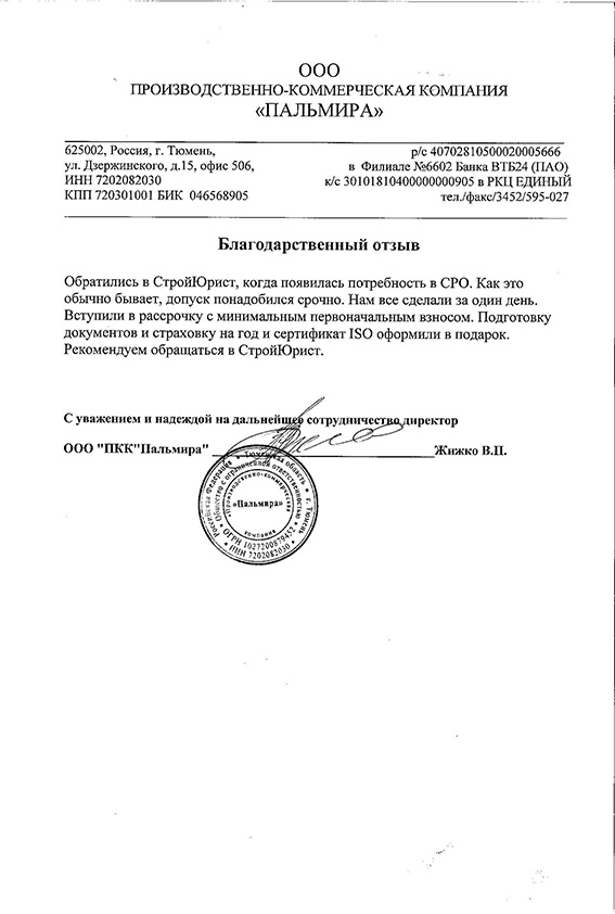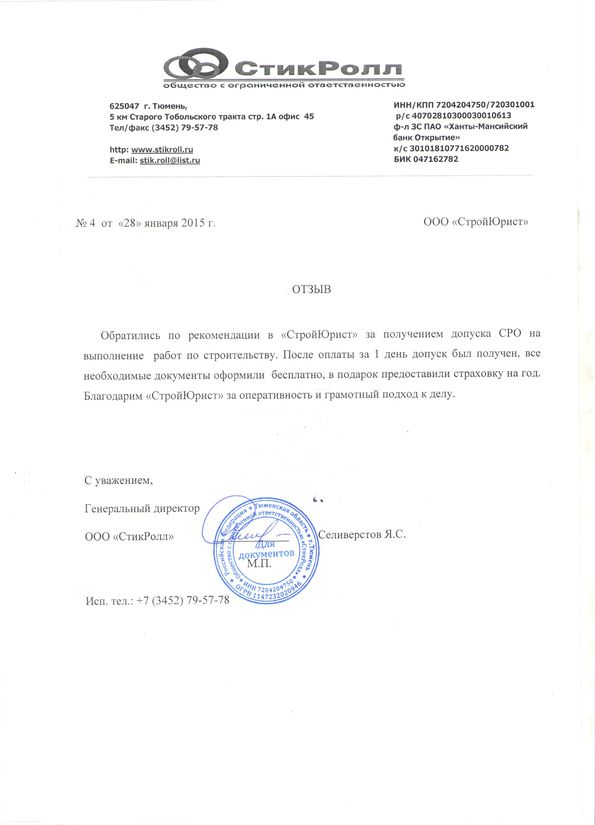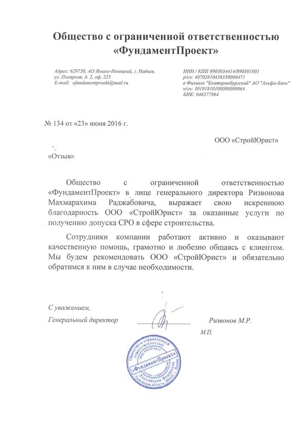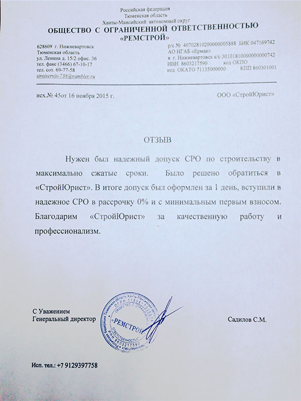 Отзывы клиентов "СтройЮрист" по вступлению в СРО в Махачкале