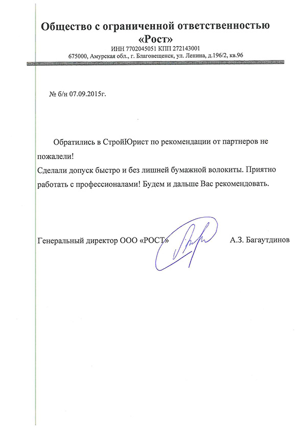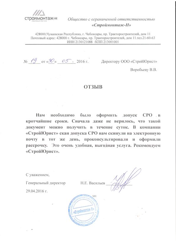 Отзывы клиентов "СтройЮрист" по вступлению в СРО в Махачкале