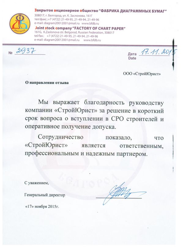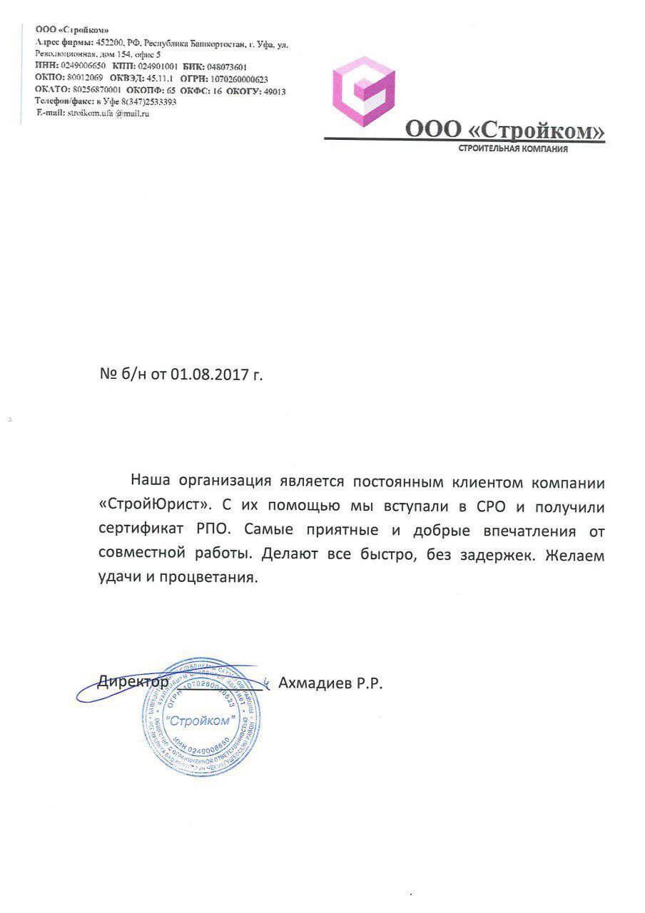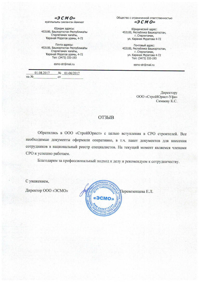 Отзывы клиентов "СтройЮрист" по вступлению в СРО в Махачкале
